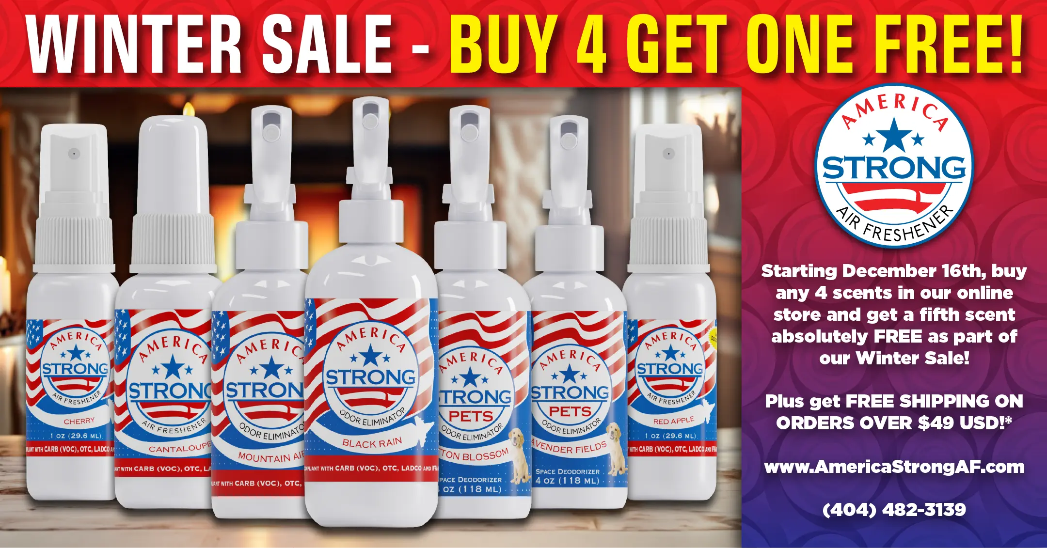 In addition, we package our odor eliminators in durable, non-aerosol spray bottles that feature high recycled plastic content and are easily recyclable themselves. This means when you buy AMERICA STRONG, you are confidently purchasing a product that is safe for you, your family, and this beautiful country we love so much.